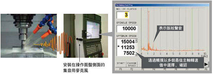 使主軸的轉速按照最佳的幅度和周期變化,便能夠抑制車削時的加工振刀。通過優化加工條件,可延長刀具使用壽命,縮短加工時間,對於深孔鏜桿、切削螺紋、開槽加工非常有效。