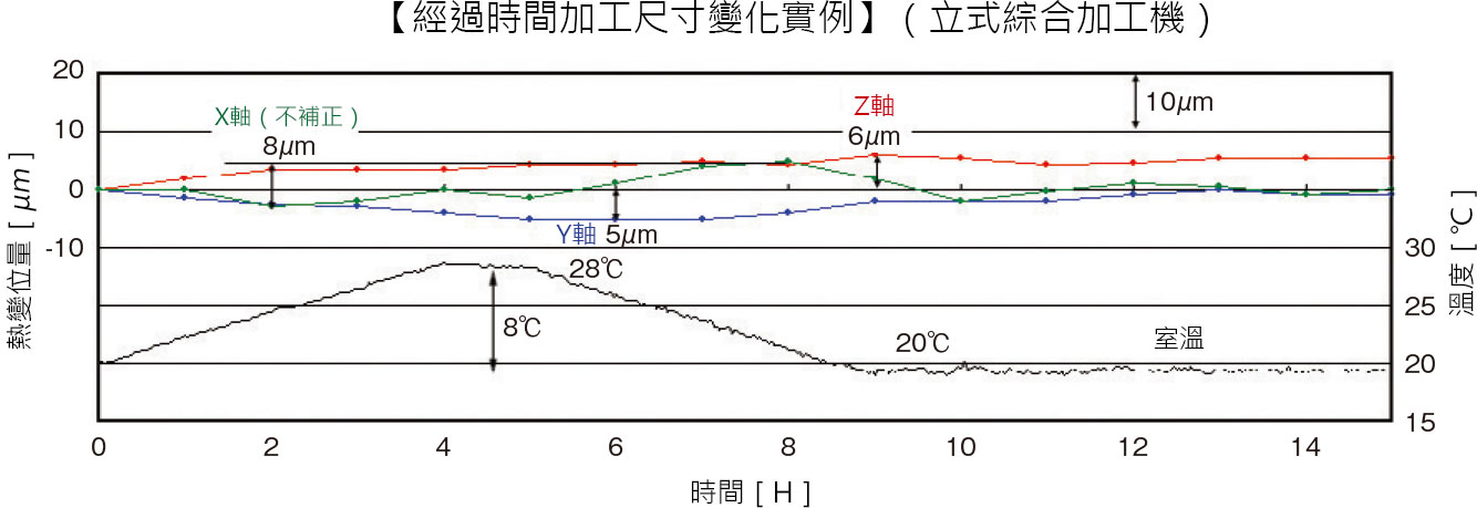 在室溫環境溫度變化的情況下,自動地使機器保持在最佳且穩定的狀態下,可達到最理想的加工精度。